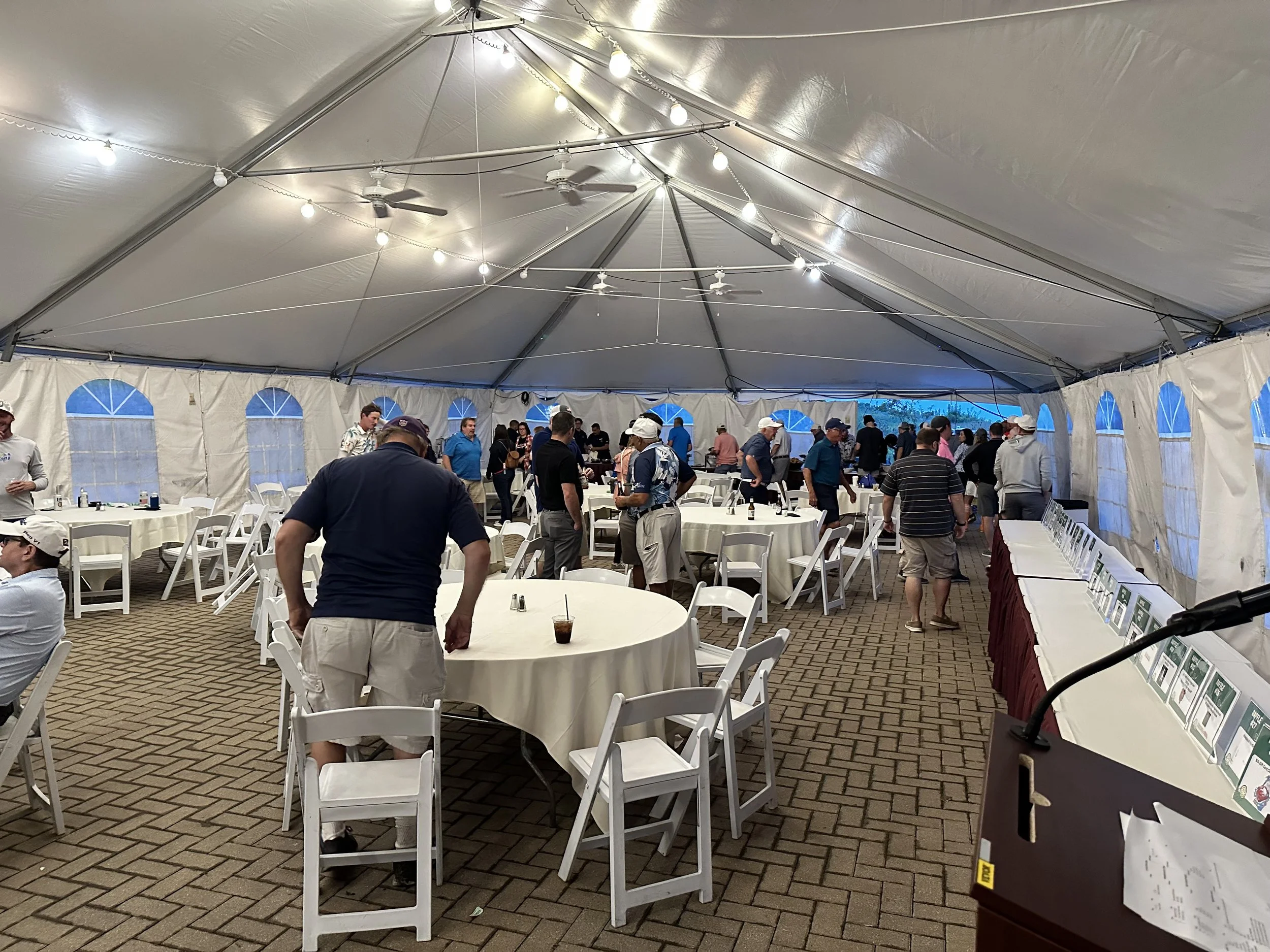 Teachers, parents, administrators, sponsors, and golfers come together for a fantastic dinner and a chance to socialize under the tent at Bolingbrook Golf Club.